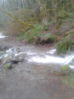 The trail is pretty well-kept. It only gains 650ft of elevation, so I had a nice break from the thigh-burning climbs I had been doing in weeks past. At this time of year and in this kind of weather, the trail becomes a stream on some parts along the way. There are many small creeks to maneuver across, but nothing impossible. However, there were two creek crossings I can recall with relatively strong currents and little or no stepping stones, so be very careful.