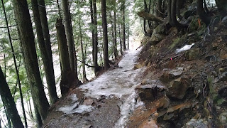 Conditions on the trail were very slick today. Although they weren't absolutely necessary, micro-spikes would have made a world of difference for me. At the very start, the trail is a bit flooded. Not difficult to walk around, but definitely deep enough to get your feet soaked. There is also a nice spot to go off the trail and take some pictures right on the creek.